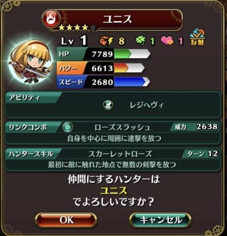 ハンタースキルは発動するまでに時間がかかり、発動しないままクエストが終わることも多いので、序盤攻略のためにはリンクコンボを重視してキャラを選ぶのが良いと思います。