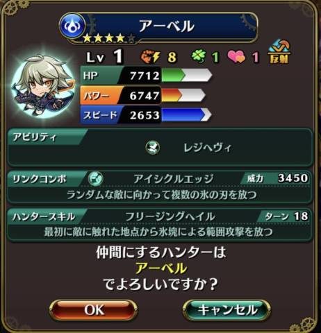 アーベルの方がリンクコンボの火力が高く、スキル発動まで長いですが範囲攻撃となっていたので、管理人はアーベルを選択しました。
