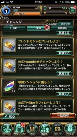 「公式Youtubeをチェックしよう!」と「公式Twitterをフォローしよう!」は挑戦するで移動するだけで達成扱いになります。