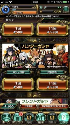 10/26時点ではハロウィンガシャと常設のハンターガシャが開催されていました。
