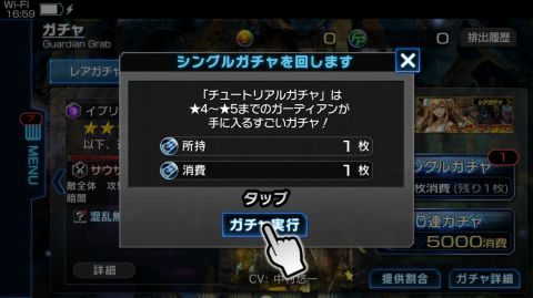 チュートリアルガチャからは星4か星5のガーディアンが出現します。