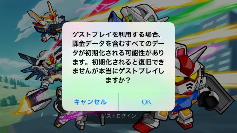 ゲストログインは機種変更などによる端末間のデータ引継ぎが出来ないと思いますので、自己責任でお願いします。
