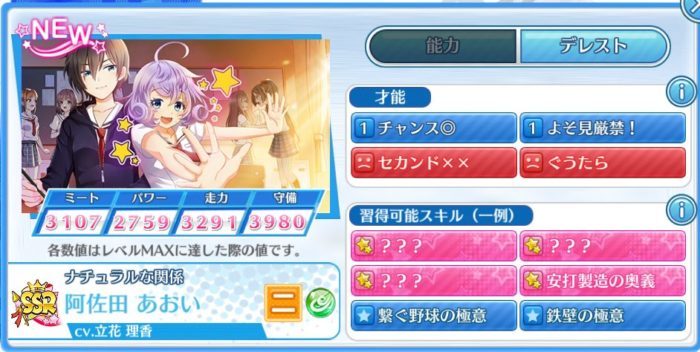全ての選手がSSRまで覚醒(進化)しますが、最初からSSRの選手の方が強力なスキルを多く習得できます。