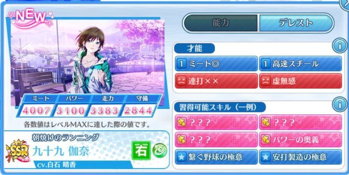 | 九十九 伽奈(朝焼けのランニング) | 右翼手 | 4007 | 3100 | 3383 | 2844 |