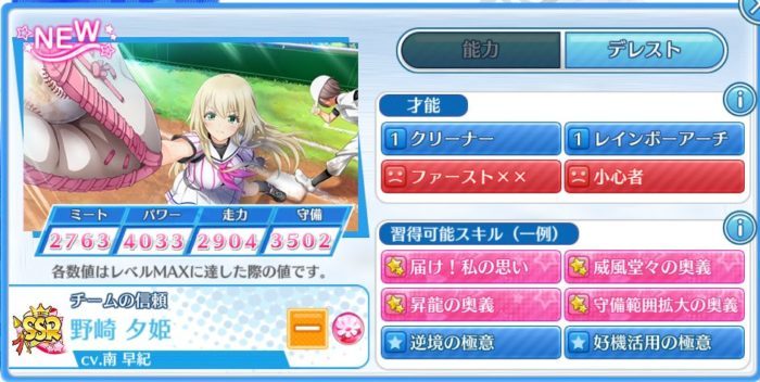 | 野崎 夕姫(チームの信頼) | 一塁手 | 2763 | 4033 | 2904 | 3502 |