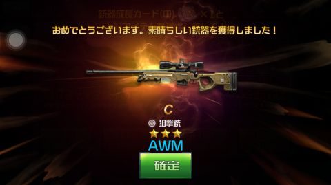 クリア後にショップが解放されてチュートリアルガチャを引けますが、Cランクの星3狙撃銃「AWM」しか出ません。