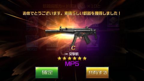▲Cランクですが☆6突撃銃の「MP5」を確認しました。