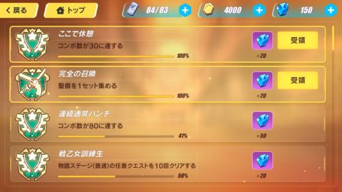 ▲達成している実績の報酬を受け取ります。