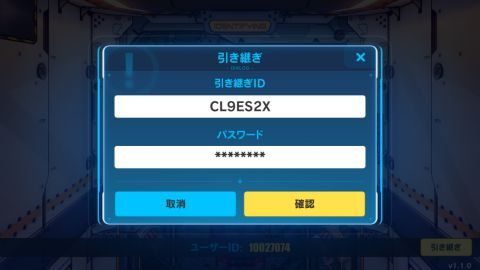▲もう1台の端末で引継ぎIDとパスワードを入力します。