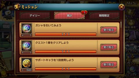クエストをクリアするとログインボーナスをもらってチュートリアルは終了です。