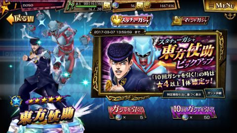 ▲星5の東方仗助がピックアップされています。