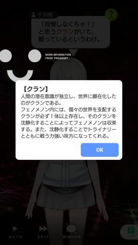 セリフの吹き出しに「?」アイコンが表示されたときはセリフ中の専門用語の説明を見ることができます。