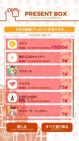ホーム画面右のプレゼントボックスから「スタートダッシュキャンペーンボーナス」のジュエルを受け取ります。