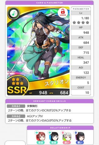 ガチャからは4属性×4種類で16種類のSSRサーバントクランが出現する可能性があります。