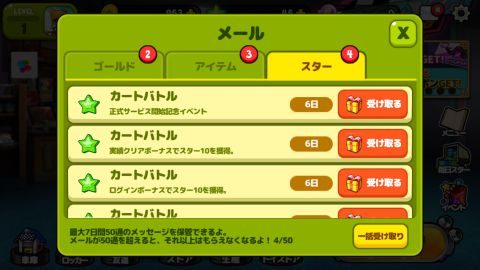チュートリアル明けにはメールからスターを受け取れます。