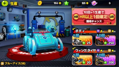 ガチャには「ボディ」と「ウィング、タイヤ」の2種類が用意されています。