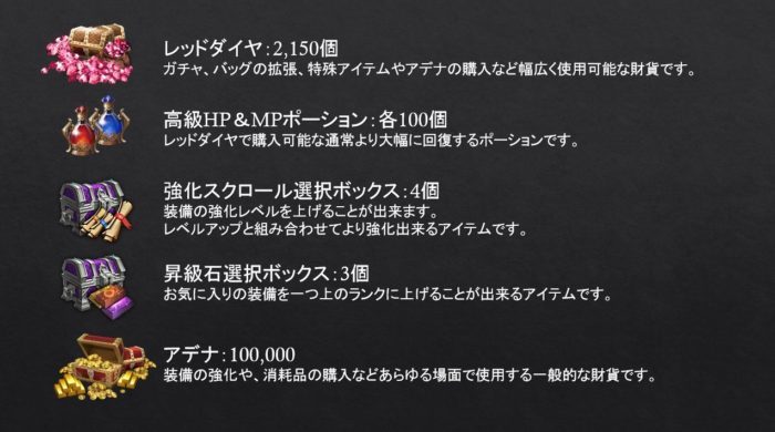 1回限定でSR装備が確定する「高級装備品召喚ボックス」もありますが、リセマラは短時間で周回できるので、リセマラ終了後まで温存することをおすすめします。