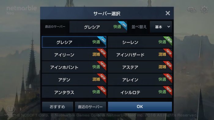 リリース時点ではサーバー間の交流や、ユーザーデータの移動はできないので、知り合いと同じサーバーで遊びたい場合は同じサーバーを選ぶようにしましょう。