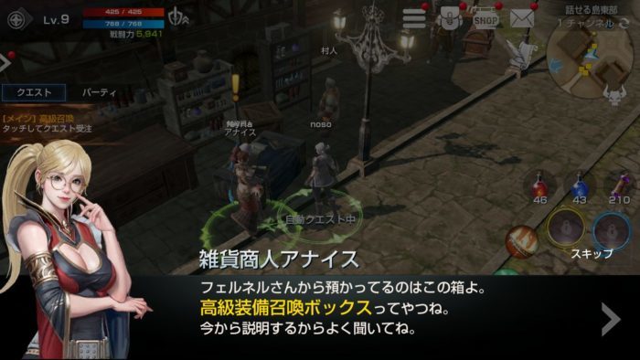 レッドダイヤ120個で買える高級装備品ボックスはメインクエスト1-5までは解放されず、1-6の高級装備品召喚ボックスのチュートリアルの後で解放されます。