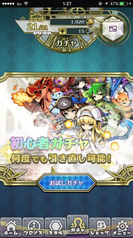 チュートリアルガチャはタダで引くことが出来るお試しガチャで引き直しが可能となっています。
