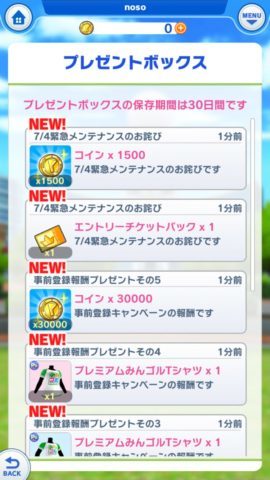 みんゴルのリセマラはプライズセンターのプラチナのギアが大当たりとなります。