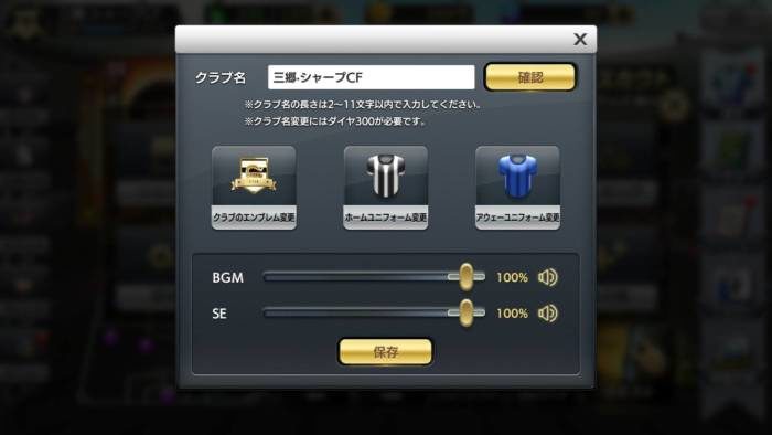 - エンブレム、ユニフォーム、クラブ名の設定(後から変更可能)