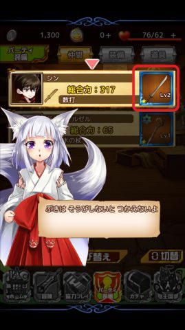 ナビに従って、ガチャから出た武器を装備しましょう。