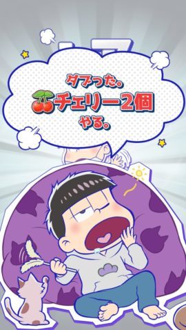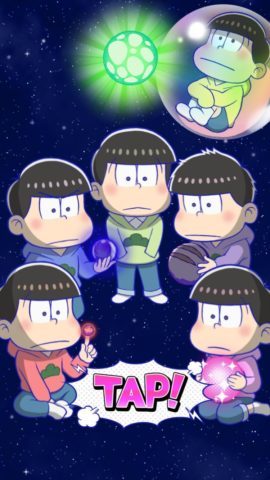 ガチャ演出画面(六つ子が集まっている画面)の背景が、家の中ではなく宇宙空間っぽい背景でした。カットインは入りませんでした。