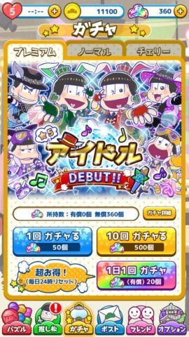 チュートリアルガチャで星5アイドルおそ松が出ましたのでご報告です。