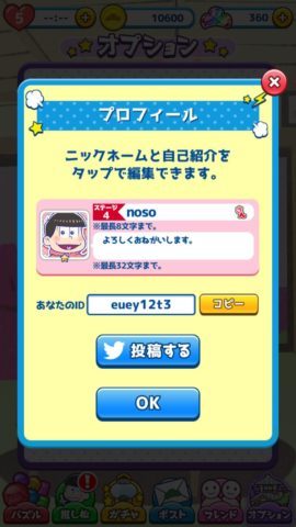 ニックネームはチュートリアルが終わった後にフッターメニューのオプション⇒プロフィールから変更することができます。