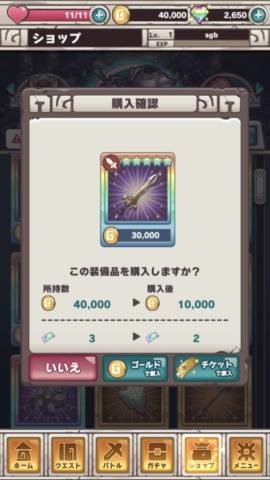 装備とキャラの入手方法はガチャだけでなく、ショップでゲーム内通貨による購入が可能となっており、全ての星5装備と星5キャラクターはショップで購入もしくはチケット交換が出来るようになっています。(アシュロットは事前登録報酬で手に入ります。ショップで装備を購入してもキャラは解放されません。)