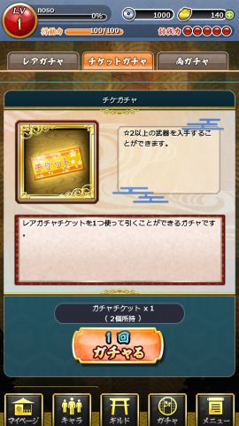 はじめにガチャチケットを2枚もらっているので2回ひけます。