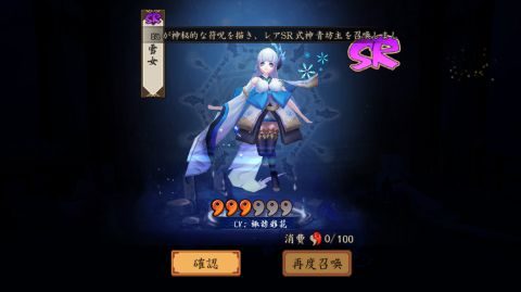 この召喚の結果はランダムですが、Rの式神までしか出現しません。