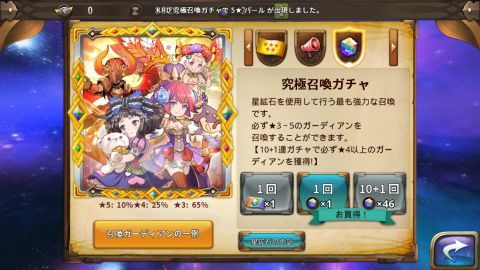 ▲究極召喚ガチャは初回「星鉱石」1個!
