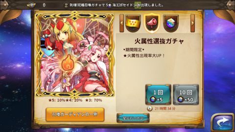 その後は「火属性選抜ガチャ」でも「究極召喚ガチャ」でも合わせて5回引けます。
