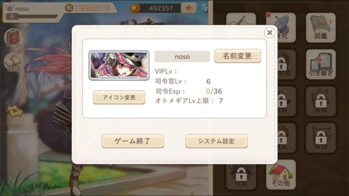 司令官の名前は左上の名前をタップし、名前変更から変更することができます。