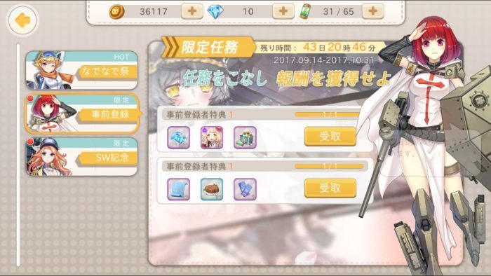 自由に動けるようになったら画面上部のイベントから事前登録報酬を回収します。