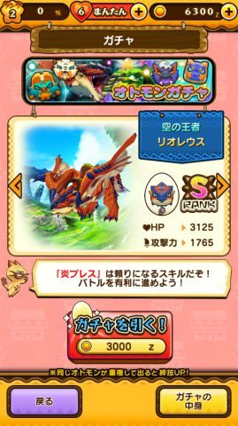 ガチャからは合計9種類のSランクのオトモンが出現し、同じオトモンでも持っているスキルにバリエーションがあります。