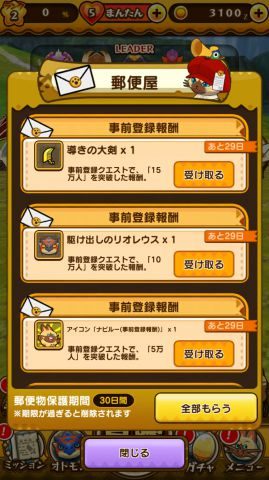 郵便屋に事前登録報酬などが届いているので全て受け取ります。