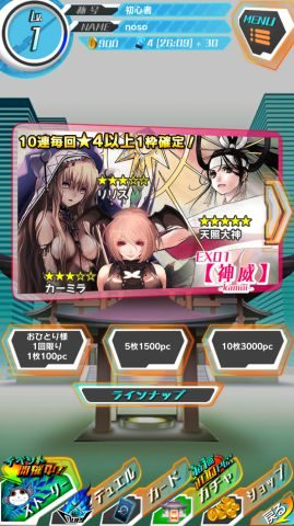 「ガチャ EX01 神威」から星5カードは↓の4種類が出現する可能性があります。