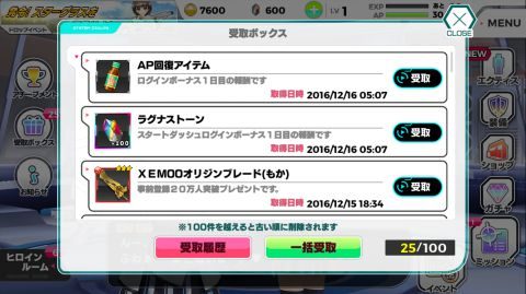 ▲受信ボックスからラグナストーンやガチャチケットを受け取ります。