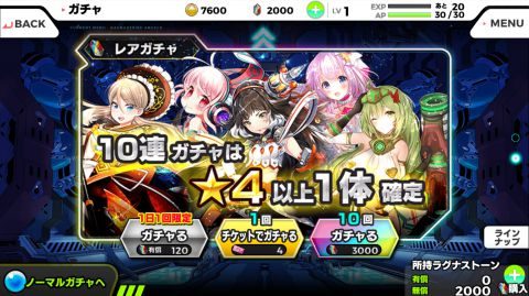 ガチャにはスタートダッシュガチャとレアガチャの2種類が用意されています。