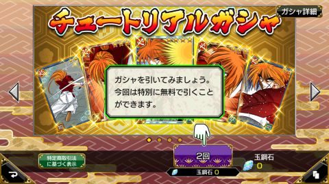 ピックアップガシャ開催中は剣心以外のキャラクターはかなり出現率が低くなっているので、目指す場合は根気が必要になりそうです。