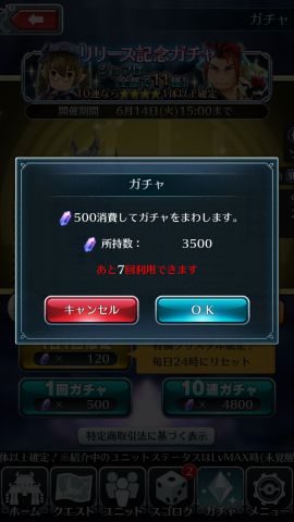 ここで☆5ユニットや目当てのユニットが出なければリセットして最初からです。