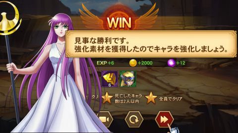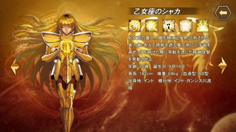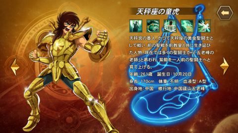 | 天舞宝輪 (覚醒スキル) | 乙女座最大の奥義。ランダムの敵3体に念力ダメージを与え、8.5秒間沈黙状態にする。 |