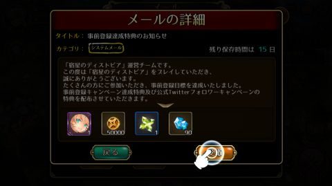 メールから事前登録特典「友情結晶90個」を受け取ります。