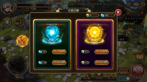 メインクエスト1-3をクリアし、クリア後にメールからを受け取ってやっとガチャを引けます。