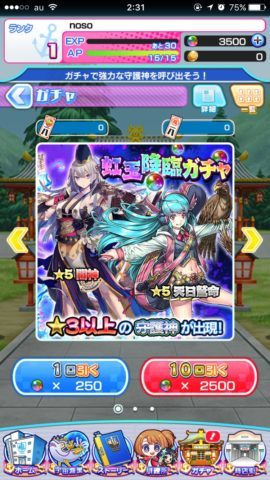 虹玉降臨ガチャを手持ちの虹玉で引けるだけ引いて目当ての守護神が手に入らなければリセットして初めからやり直します。