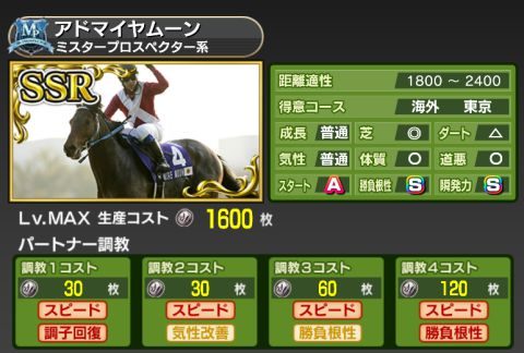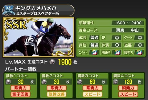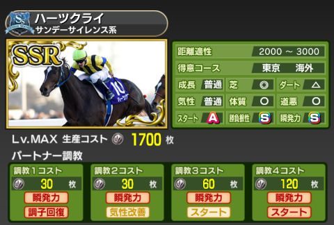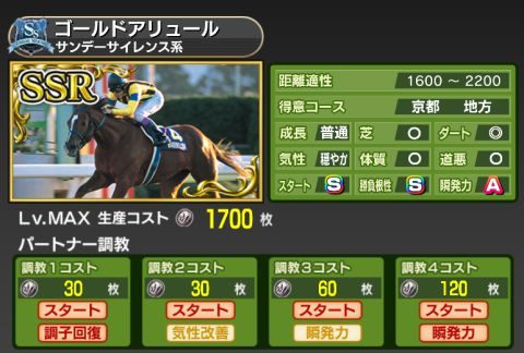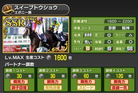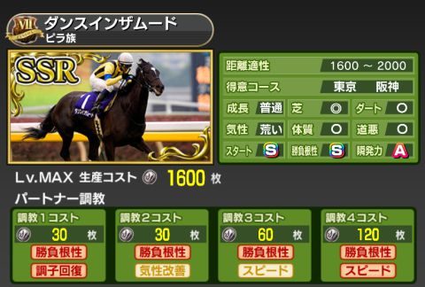 | スタート:S | 勝負根性:SS | 瞬発力:B |