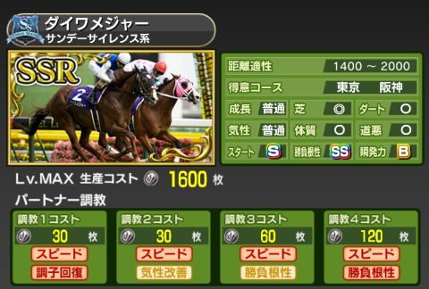 | スタート:B | 勝負根性:S | 瞬発力:SS |